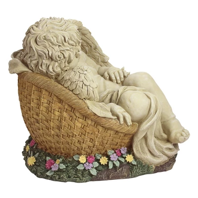 You’ll long to take your own nap when you gaze at this gentle angel, asleep in a basket of garden posies. From dimpled knees to upturned nose and pudgy tummy, the artist has sculpted this curly-headed cherub so realistically you’ll move your ear closer to see if he’s actually breathing. Cast by the artist in designer resin and surrounded by hand-painted flowers, this sculpture is perfect for home or garden.