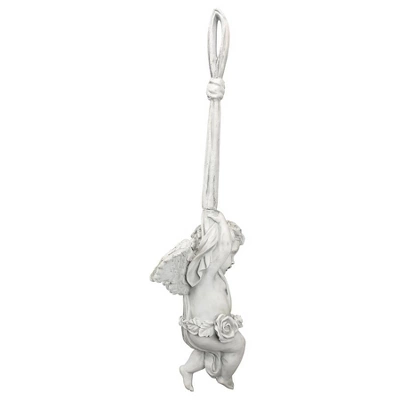Our exclusive, baby angel statue playfully swings from his own artistically sculpted ribbon! Appearing to lower himself from the heavens, his youthful face and pudgy knees made us fall instantly in love with this “angelic vision.” Our artist has translated the arched wings, sweet face and sculpted ribbon of this peaceful baby angel sculpture into a work of art that makes any spot one for quiet contemplation. Our Design Toscano-exclusive cherub sculpture is cast in quality designer resin and hand-painted one piece at a time. Add your own rich velvet ribbon for hanging in your home or garden. Another quality Toscano garden angel statue! Ships in 2 pieces. Large: