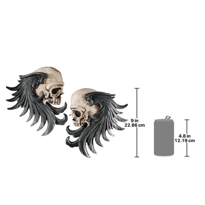 For a true taste of “Gothic couture,” add this double macabre duo of skull sentinels to your wall. With stylized wings, this Design Toscano-exclusive facing pair is skillfully cast in designer resin and hand-painted to capture the dark side of decaying beauty. Each 7″Wx1″Dx9″H. 2 lbs.
