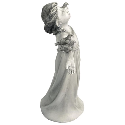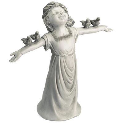 Delight in the joy of pure praise with this darling little girl statue raising her arms full of feathered friends! This magnificent girl sculpture is cast in quality designer resin and hand-painted. Our little girl figurine is as at home indoors and out, alerting fellow gardeners that you take the beauty of the exterior of your home as seriously as the interior. Small: 12″Wx5″Dx12″H. 3 lbs. Medium: 14½”Wx5″Dx16″H. 4 lbs. Large: 25″Wx10½”Dx29½”H. 9 lbs.