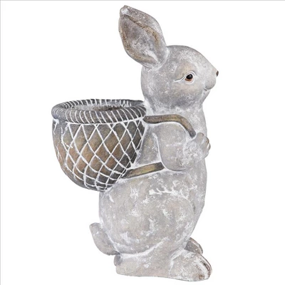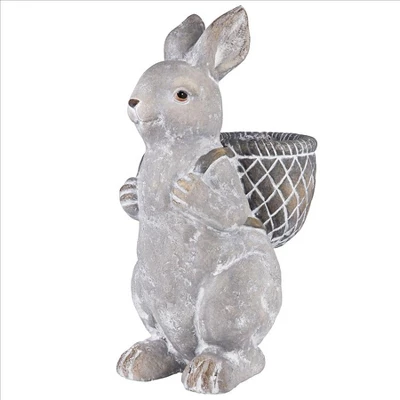 Celebrate the bounty of springtime with this almost foot-and-a-half tall bunny rabbit who happily hops into your home or garden decor with a characteristic basket full of bounty! Cast in quality designer resin with a rough, faux stone finish to replicate its soft fur, this handsome hare is a Design Toscano exclusive to be beautifully displayed year-round. Optionally, dried or silk flowers can be added to his basket. 10″Wx6½”Dx16″H. 6 lbs. Basket: 4¼”Wx4¼”D.