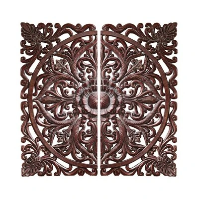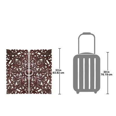 Add rich architectural interest to any wall with this sophisticated rosette, a revered design dating to the antiquity of ancient Greece. With a nod to the deeply hand carved wood panels of Asia, our Design Toscano designer resin, two-piece, faux wood replica stretches almost a yard tall and wide. Found only at Design Toscano, this is a strikingly beautiful statement piece for home or office. Each 16½”Wx1″Dx33″H. 3 lbs.