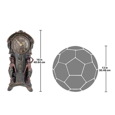 It’s easy to celebrate the inspiration of the Art Nouveau movement with the climbing vines, flowers and lithe maidens that so beautifully unite in this splendidly functional work of art. Created in the style of Art Nouveau master Karl Korschann, our Design Toscano exclusive is cast in quality designer resin with a verdigris bronze finish. Dual maidens gesture toward the smart, quartz movement clockwork that ushers in a style beloved since the late 19th century. Accepts your single AA battery, not included. 8″Wx5″Dx16″H. 7 lbs.