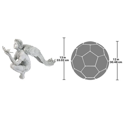 Look at those wings! Both avid collectors and new fans of the popular long-winged angel series by artist Evelyn Myers Hartley are thrilled with her newest cherub! Exquisitely sculpted from the wreath of flowers encircling her curls to the tips of her almost impossibly-extended and intricately feathered wings this angel is a vision of beauty cast in quality designer resin. Simple assembly required. 22″Wx4½”Dx13″H. 7 lbs.