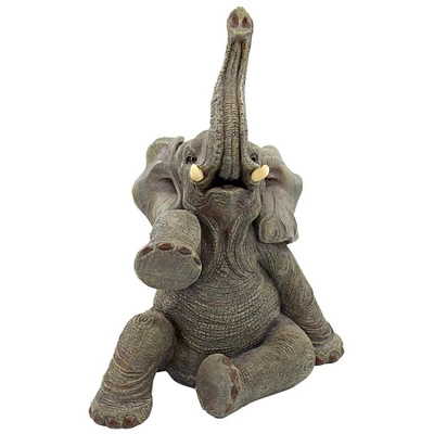 Since pachyderms in the wild spend up to 18 hours daily eating grass and plants, we’re guessing even Pint-Sized Petey could eat his fill! Welcome guests to your exotic garden with this African elephant statue with trunk raised high to symbolize good luck. At almost two feet tall, our scaled elephant statue is quite at home in garden. Sculpted with leathery elephant hide, oversized ears and a wrinkled trunk pointing upwards for good luck, this Design Toscano exclusive pachyderm animal statue is cast in quality designer resin and individually hand painted in a natural palette of smoky grays. 13″Wx12″Dx20″H. 12 lbs.