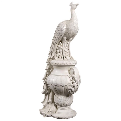White peacocks have been kept at the Netherlands’ Staverden Castle since the year 1400 when the Duke of Gueire lent his lavish forest home only under the condition that it still keeps white peacocks to provide feathers for his helmet. The peacock feathers are now presented annually to the Commissioner of the Queen in Gelderland. Sculpted atop a gloriously arched urn, our Design Toscano exclusive still-proud peacock statue was cast in quality designer resin in an antique stone finish. Giant: 21½”Wx15½”Dx47″H. 22 lbs.